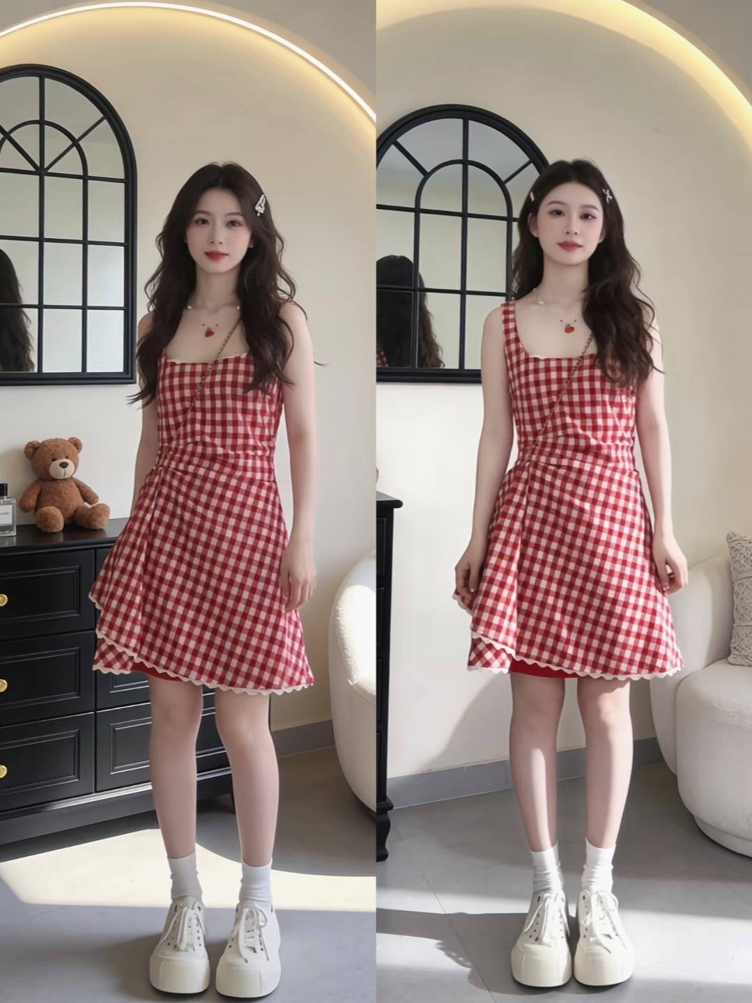 整理了7套不重样搭配,吊带裙、蕾丝裙、格纹裙全安排——